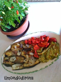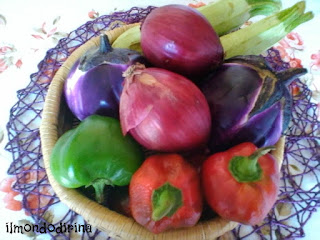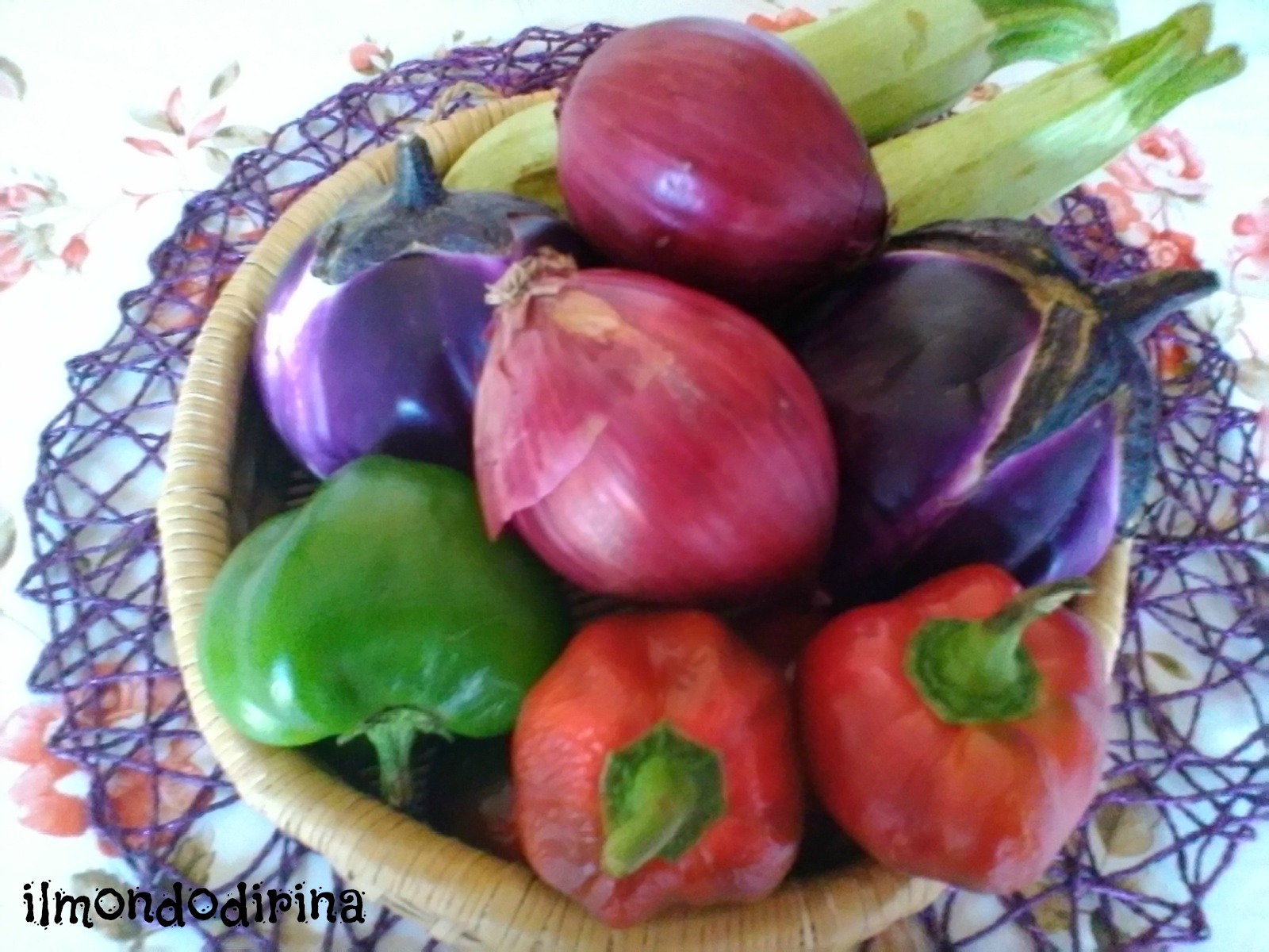 Preparate le verdure: lavate e spuntate le melanzane e le zucchine, tagliate a rondelle le cipolle. Foderate una tortiera con carta forno, versate un filo d’olio evo e sistemate le melanzane e le zucchine salandole. Infornate a 200° e quando le verdure sono pronte spegnete ed infornate le cipolle che devono solo appassirsi. Infornate poi i peperoni e arrostiteli. Una volta freddi togliete i semi e la pelle e asciugateli con carta assorbente da cucina.