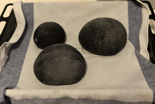 Dividete l’acqua in due contenitori: sciogliete in uno il sale, nell’altro il lievito. Aggiungete la farina in quello col lievito e mescolate. Una volta raggiunto il punto di pasta, aggiungete anche l’acqua col sale e continuate ad impastare per una ventina di minuti, finché l’impasto non sia bello liscio ed omogeneo. Formate una palla, coprite a campana e fate lievitare per un paio di ore (nella foto, da sx: prima della lievitazione e dopo la formatura dei panetti).