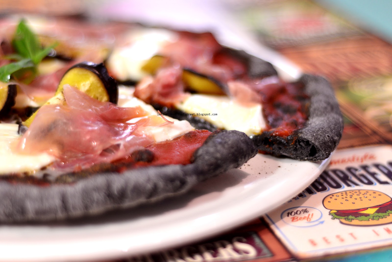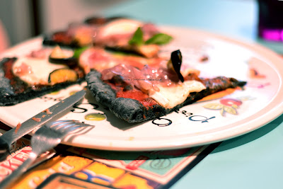 Pizza nera con bufala, melanzane e culatello – 8 h