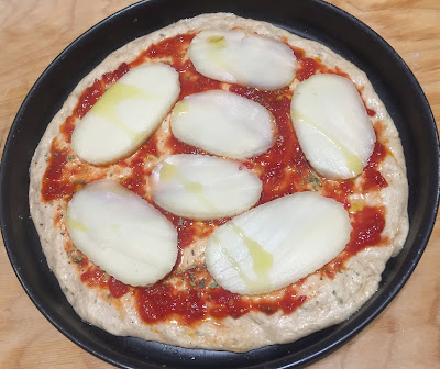 Preparate l’impasto della pizza e una volta pronto adagiatelo in una ciotola unta d’olio e fatelo lievitare fino a raddoppiare di volume ( io tutta la notte in frigo). Una volta pronto dividete l’impasto in due palline, infarinatele e fatele lievitare ancora coperte.