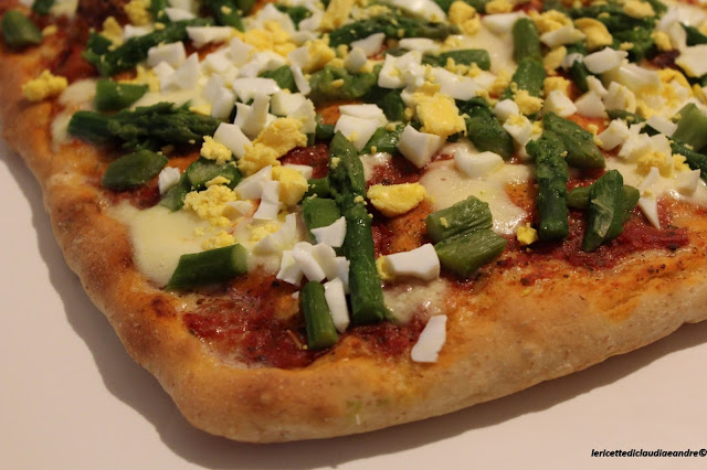 - Togliere la teglia dal forno, distribuire sopra la mozzarella sbricciolata e gli asparagi..