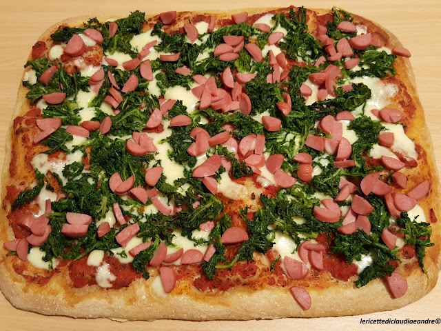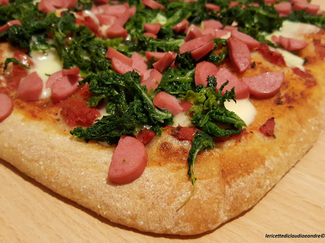 Pizza semintegrale con cime di rapa, wurstel, fontina e lievito madre