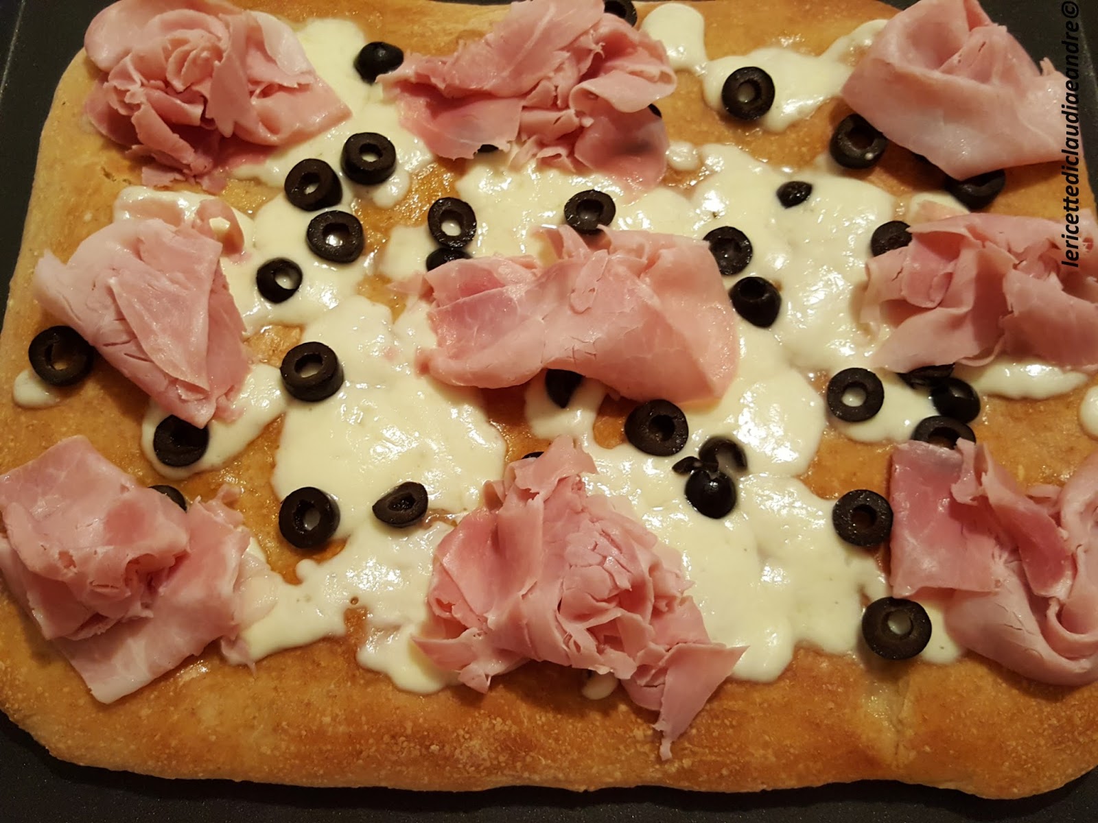 - Togliere dal forno, distribuire anche la crescenza e le olive ed infornare ancora per 2 minuti.