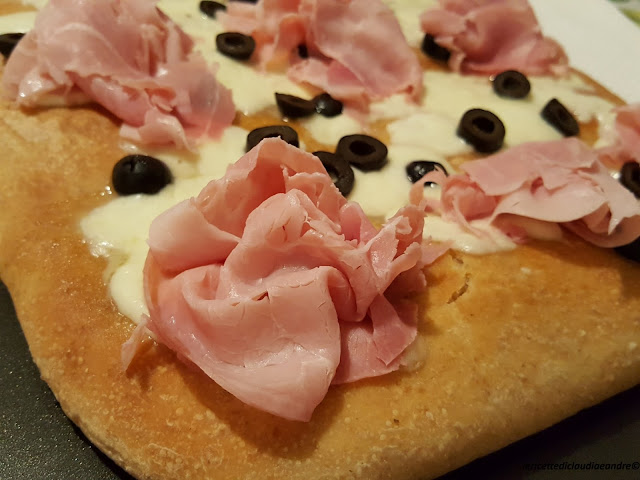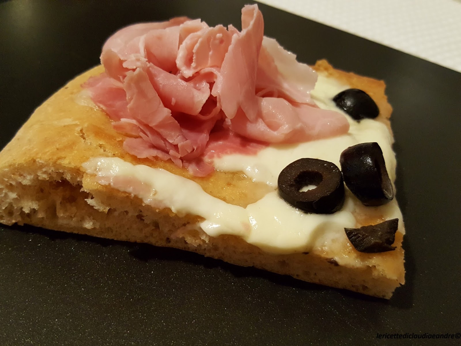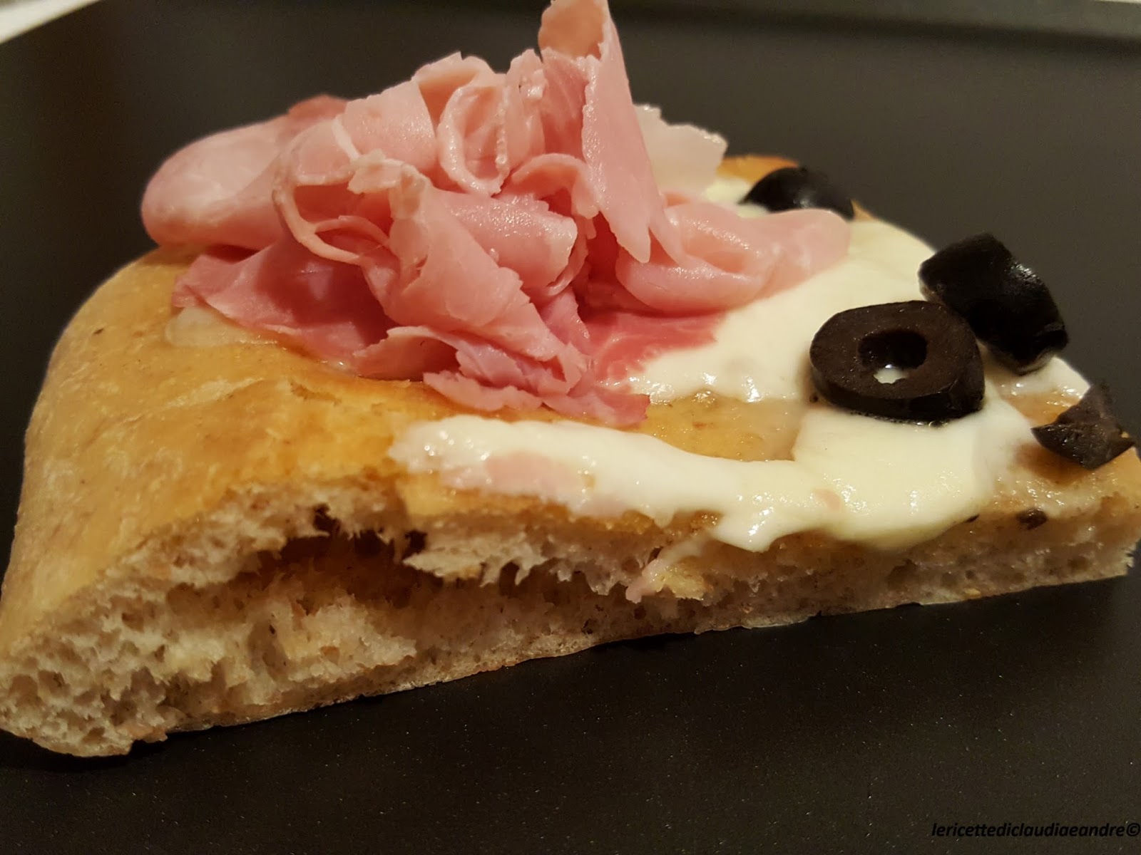 Pizza semintegrale con prosciutto cotto, olive e crescenza
