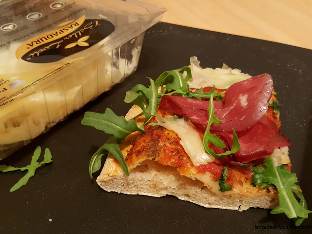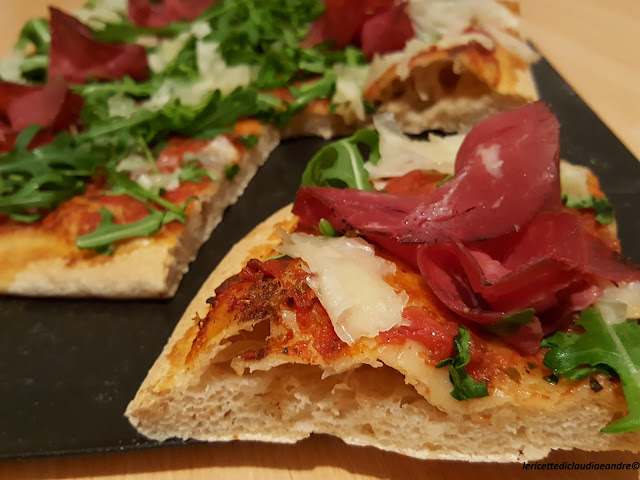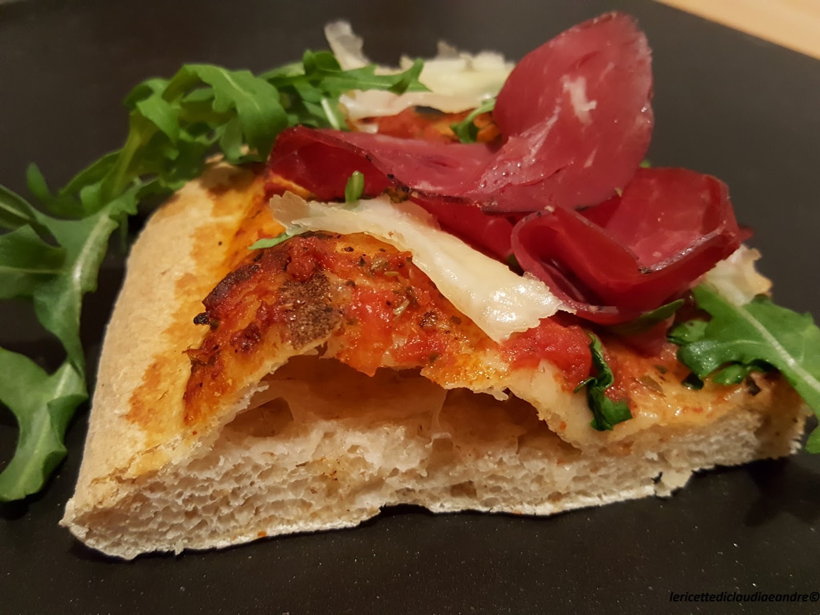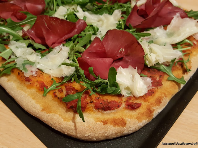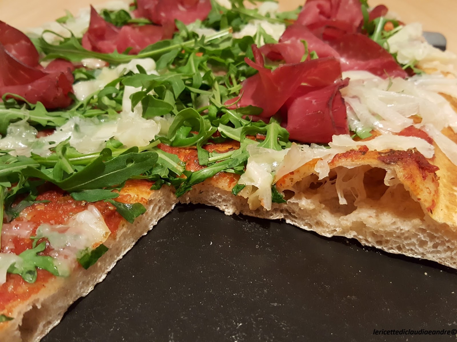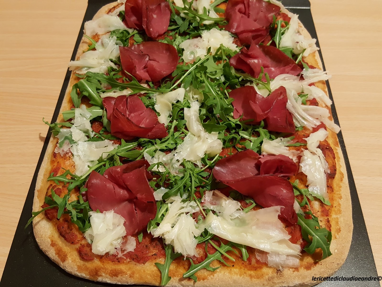 Pizza semintegrale con rucola, bresaola, raspadura e lievito madre