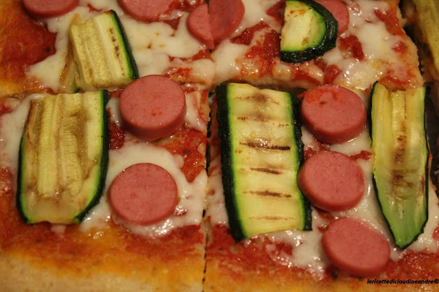 Pizza semintegrale con zucchine, mozzarella e wurstel