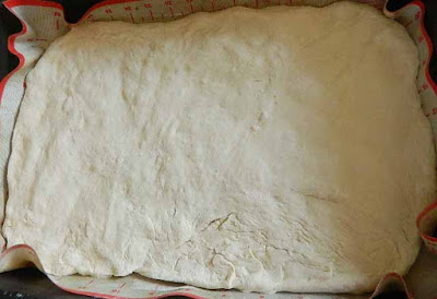 Mettere l’impasto ottenuto in un’ampia ciotola coprire con la pellicola e lasciarlo lievitare per almeno due ore, ora che siamo nella stagione fredda, ma basta anche solo un’ora nella stagione calda. Trascorso il tempo riprendere l’impasto che avrà raddoppiato il suo volume