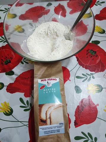 In quest’occasione ho utilizzato Mastro latte della linea il Mio Forno, il vantaggio di questi mix è quello che bisogna aggiungere solo acqua, sale ed il lievito già in dotazione all’interno del sacchetto.