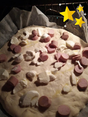 Una volta pronto l’impasto, ho steso direttamente le pizze in teglia ed ho aggiunto gli ingredienti, precedentemente tagliati e tenuti da parte.