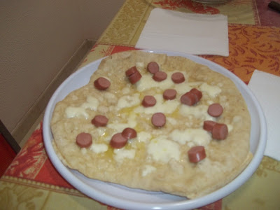 Nel frattempo preparate gli ingredienti per farcire le vostre pizze, io ho utilizzato pomodoro, wurstel a dadini, mozzarella, prosciutto cotto sempre a dadini. Vi ricordo che per 500 gr. di farina vengono circa sei pizze di media grandezza.