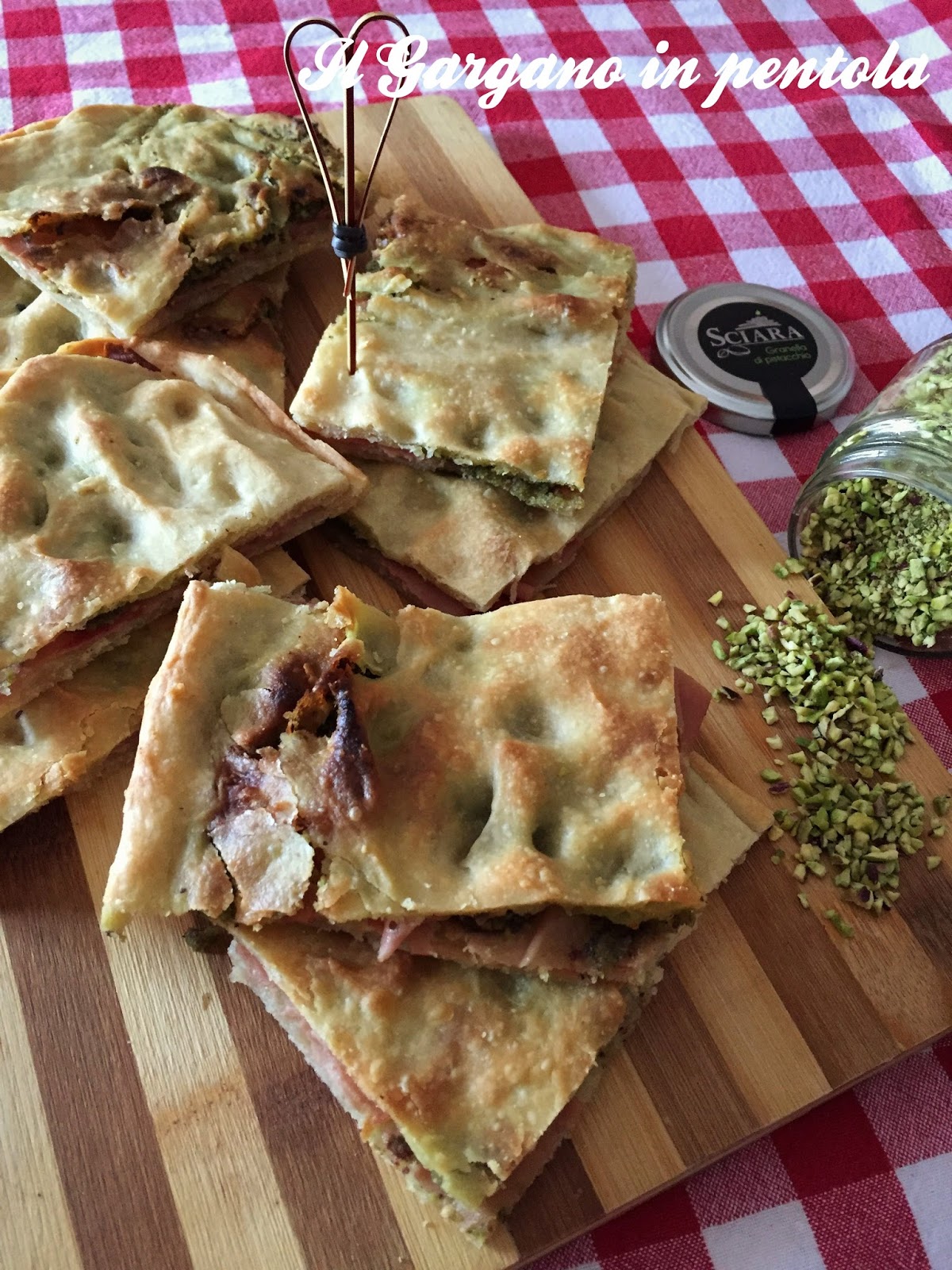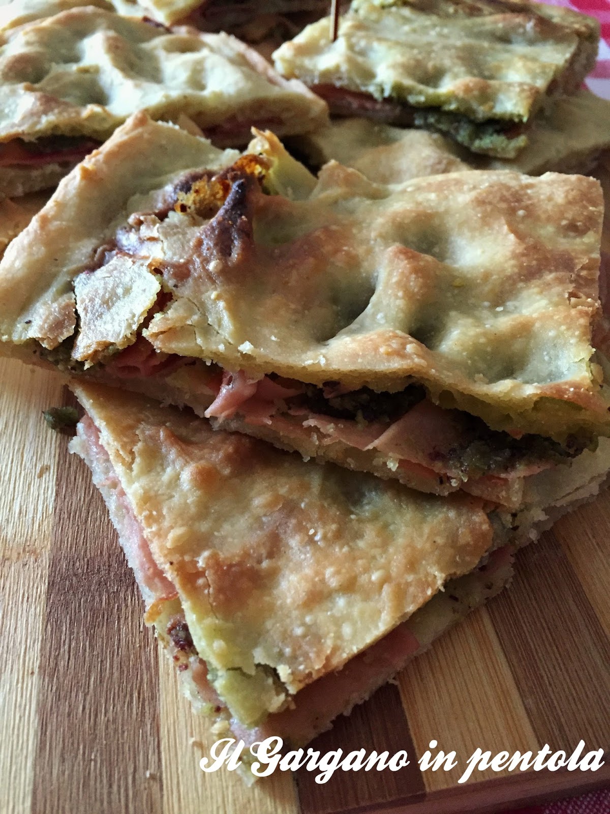 Io ho deciso di usare la mortadella che ho arricchito con delle cucchiaiate di pesto di pistacchi… Il risultato è stato molto gradevole sia da calda appena sfornata che la sera da fredda, per cui vi consiglio di provarla e vi lascio la ricetta: Mettiamoci a preparare!!!