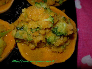 1/2 zucca butternut, 1 broccoletto, 150 gr lenticchie decorticate, sale, pepe, olio extravergine d’oliva, curry o curcuma a piacere.