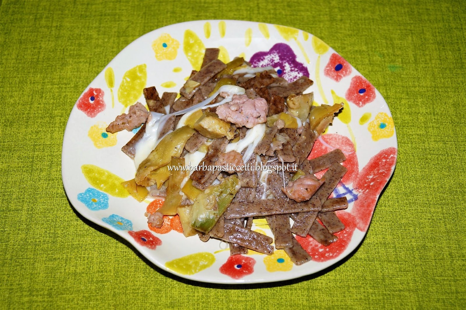 In una precedente versione, avevo realizzato la classica ricetta tipica con le patate, gli spinaci ed i formaggi, in questa occasione ho variato invece con carciofi, salsiccia e mozzarella!