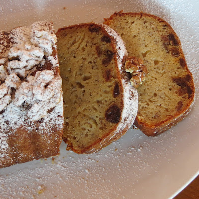 Togliete il dolce dal forno, lasciatelo raffreddare, riversatelo sul piatto, aggiungete i gherigli di noci, divisi a metà al centro del dolce e spolverizzate con zucchero a velo.