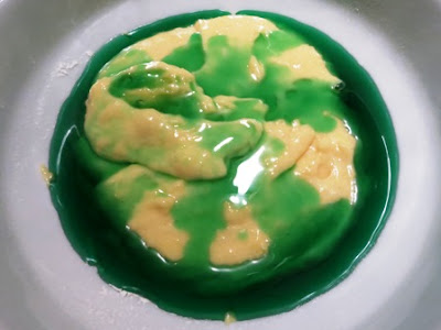 Ho solo aumentato la quantità di lievito : 1 bustina da 16 gr e aggiunto una sola goccia di colorante verde per vivacizzare il colore dell’impasto chiaro.