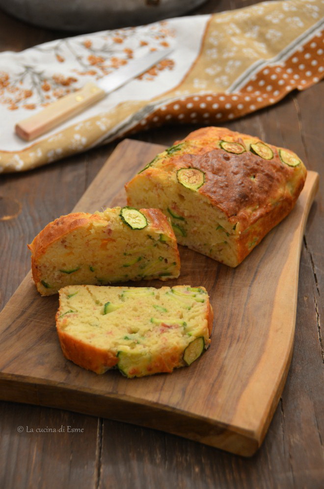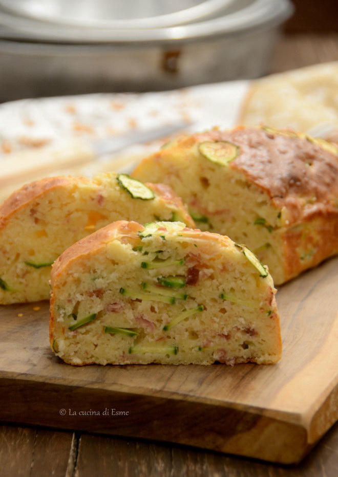 Pulite, lavate le zucchine e riducetele a fettine sottili. Poi frullate la scamorza e tagliuzzate in piccoli pezzetti il prosciutto. In una ciotola, con l’ausilio di una frusta a mano, mescolate le uova a temperatura ambiente con lo yogurt. Aggiungete poi il latte, l’olio, ed il parmigiano grattugiato e mescolate ancora. A questo punto, sempre mescolando, unite la farina con il lievito setacciato. In ultimo aggiungete all’impasto, le zucchine, la scamorza e il prosciutto. Con l’aiuto di una spatola mescolate il composto molto bene, poi versatelo in uno stampo da plum-cake da 30×11, precedentemente foderato con carta forno. Cuocete in forno preriscaldato a 180° in modalità areato per 45 minuti circa, fate sempre la prova stecchino prima di sfornare, deve uscire asciutto. Io l’ho decorato con delle fettine di zucchina appoggiate in superficie prima di infornare.