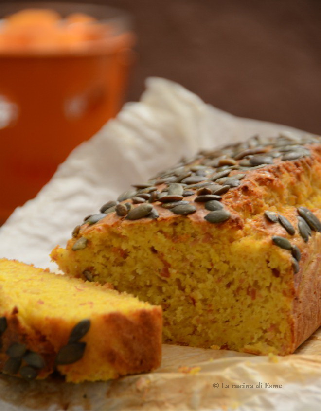 Tra qualche giorno, chi vuole, potrà festeggiare Halloween. Ai giorni nostri questa ricorrenza ha assunto tinte meno spirituali e più leggere: fra dolcetto/scherzetto, costumi spaventosi e zucche intagliate, il 31 ottobre rappresenta soprattutto un’occasione per far divertire i bambini o riunirsi con gli amici, magari condividendo un menu a tema zucca. Grazie alla sua versatilità, infatti, è possibile impiegarla in un’infinità di piatti diversi, sia dolci che salati. Personalmente non festeggio Halloween, non mi appartiene, non fa parte della mia infanzia, né della mia cultura. Di fatto è una festa che ho scoperta tramite mia figlia, per cui da brava mamma, per anni, ho comprato ragnatele, scheletri e zucche, ho truccato visi mostruosi ed ho preparato dolcetti “terribili”. Questa notte fatta di mostri, fantasmi e streghe non mi ha mai né affascinato né incuriosito. Per cui sinceramente la crescita di mia figlia in questo senso è stata una vera liberazione. Quindi nella mia cucina niente fantasmini dolci, ragnetti golosi o ossa di meringa, ma tanta zucca questo sempre! Vi lascio la ricetta di questo facilissimo e sofficissimo plum cake salato con zucca cruda nell’impasto, perfetto tra le portate del buffet della festa di Halloween, ma anche per una cenetta sfiziosa a tema zucca!