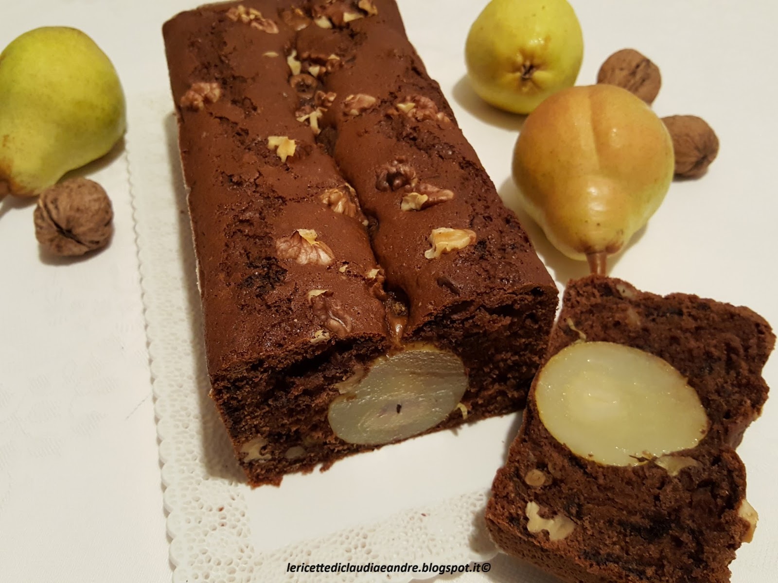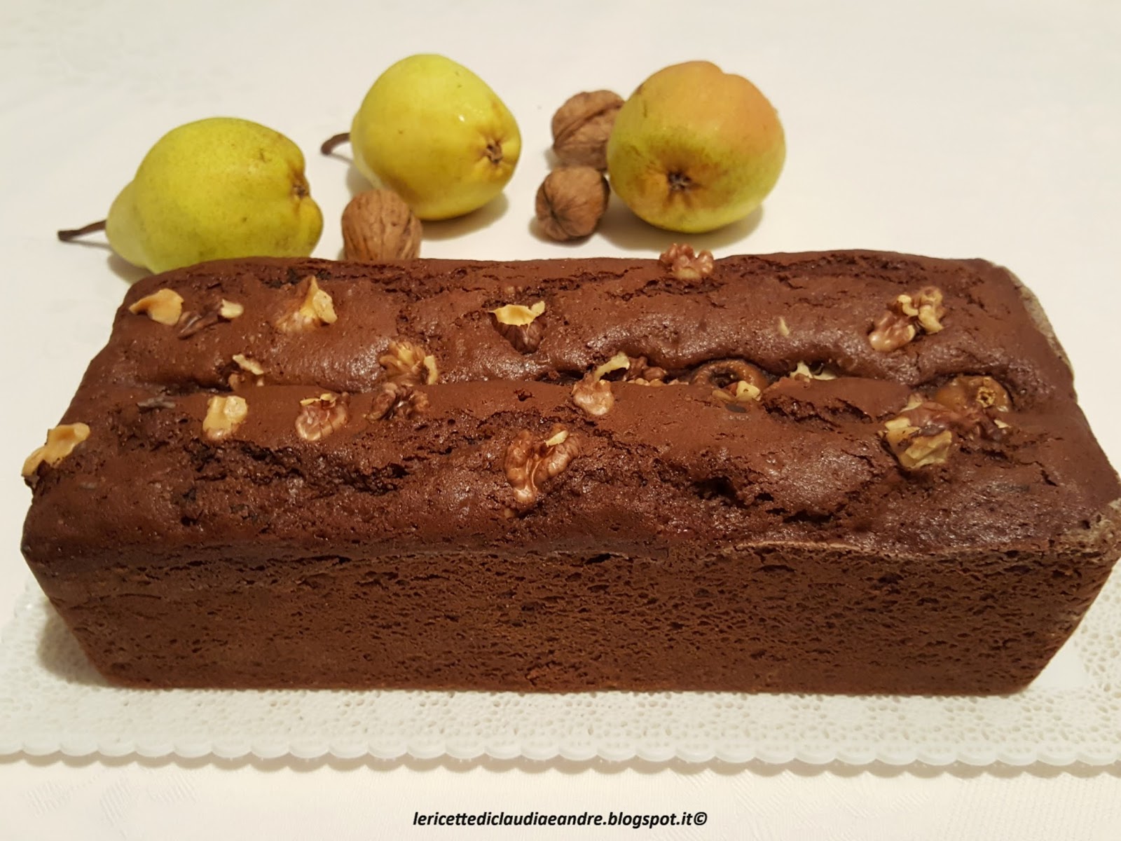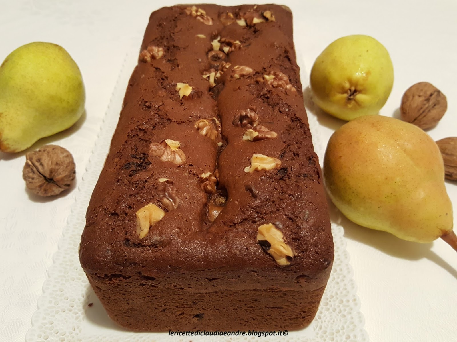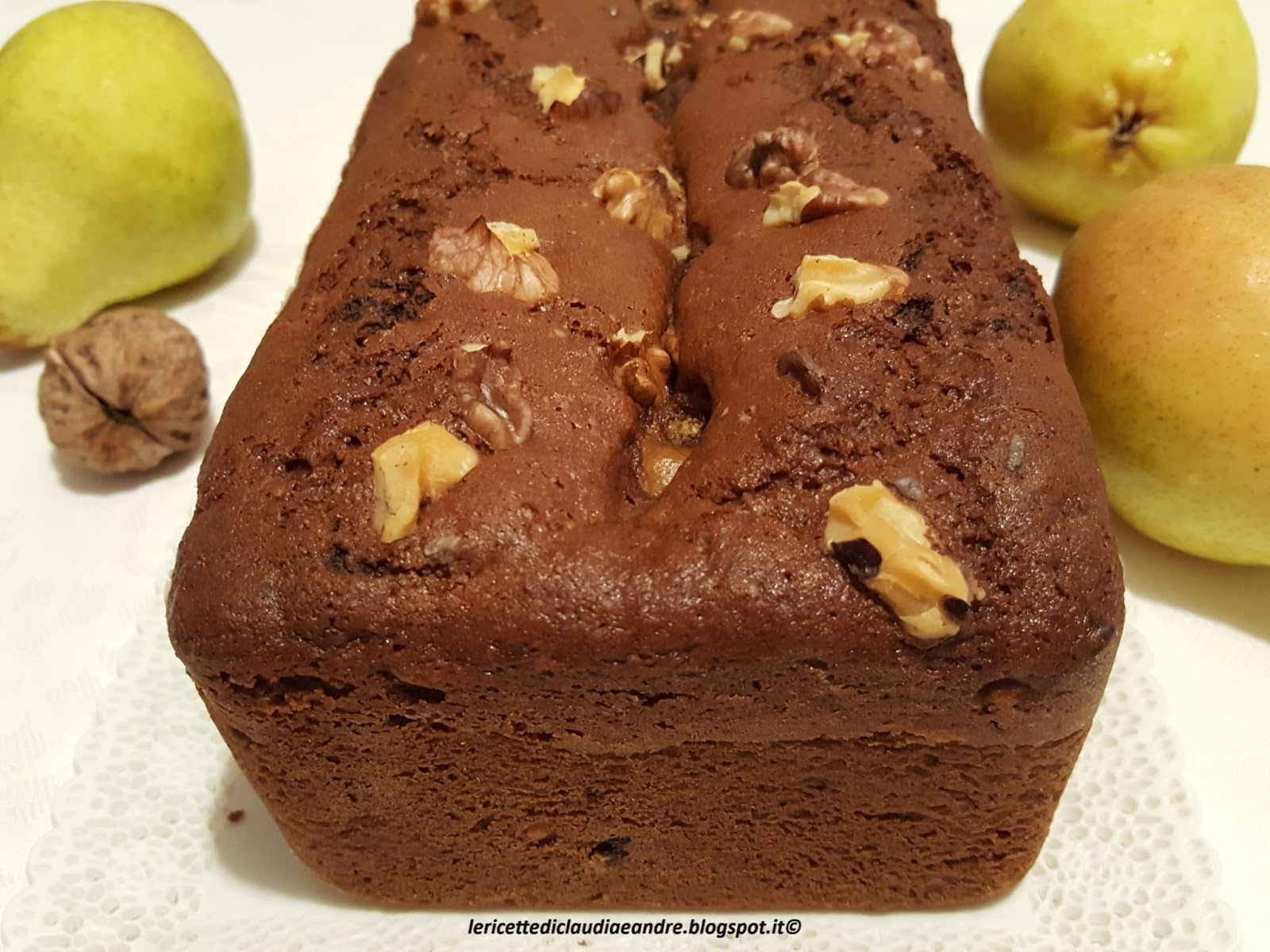 Plumcake al cacao, noci, cioccolato e pere
