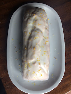 e l’abbiamo versata sul plumcake, grattugiandoci poi sopra la scorza di un limone (rigorosamente bio, buccia edibile)