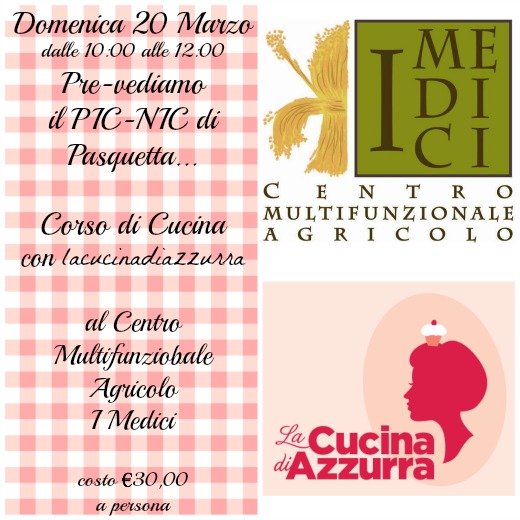Allora… segnatevi la data il 20 Marzo dalle 10:00 alle 12:00 prepareremo insieme nella cucina del negozio “I Medici” il Pic-Nic Pre-vedendo la vostra Pasquetta!!!Intanto vi scrivo anche il secondo appuntamento da “I Medici” il 17 Aprile dalle 10:00 alle 12:00 per “Un Brunch a km0″…..così non avrete scuse di impegni ahahahah, ve l’ho detto per tempo!!!