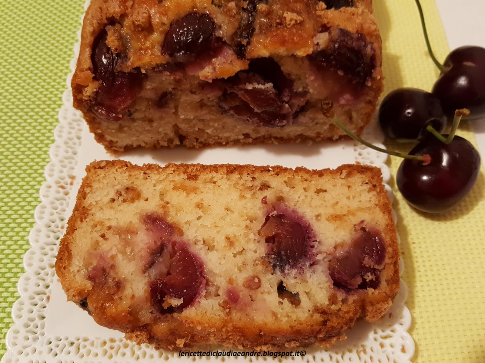 Quest’anno ho avuto l’occasione di acquistare delle ciliegie a un buon prezzo e non potevo non sbizzarrirmi nel preparare dei dolcetti golosi. Dopo la Torta alle ciliegie e granella di mandorle , il Gelato alle ciliegie, ecco anche un plumcake goloso arricchito con degli amaretti. Forse ho esagerato un pò con le ciliegie, ma alla fine si è mangiato di gusto. Vi consiglio di provarli finché si trovano ancora delle ciliegie, non ve ne pentirete. Ecco la ricetta :