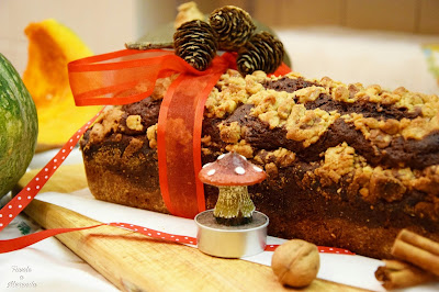 Ricoprite la superficie del dolce con lo Streusel e fate cuocere a 180°C in forno caldo per 45 minuti (ricordandovi di coprire il plumcake a metà cottura per evitare che la copertura si carbonizzi).