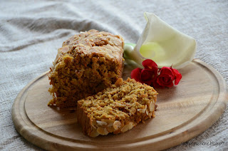 Merito anche di questa delicata torta che mi aspettava, fatta con pochissimo zucchero sfruttando il dolce delle carote e decorata con le lamelle di mandorle.
