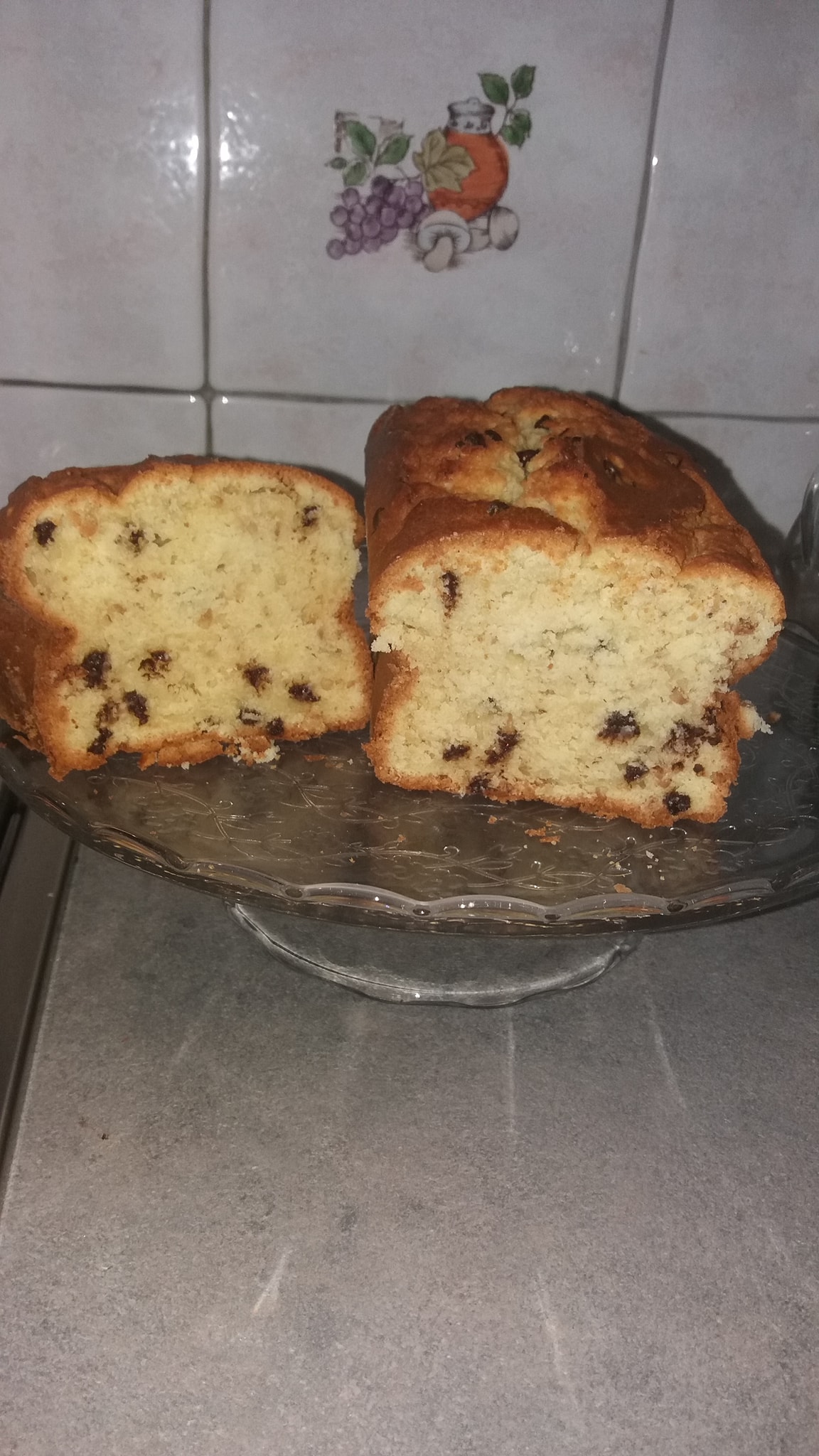 INGREDIENTI :     Farina 300 g -  Mascarpone 250 g – Panna liquida 200 ml -  Zucchero semolato 100 g -   Uova 3 -  Granella di nocciola 90 g – Gocce di cioccolato 90 g -  Bustina di lievito per dolci 1 -  Aroma di vaniglia 1 fialetta .