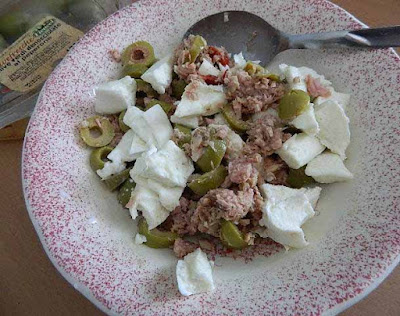 in un piatto mescolare il tonno sgocciolato con le Olive Verdi Denocciolate