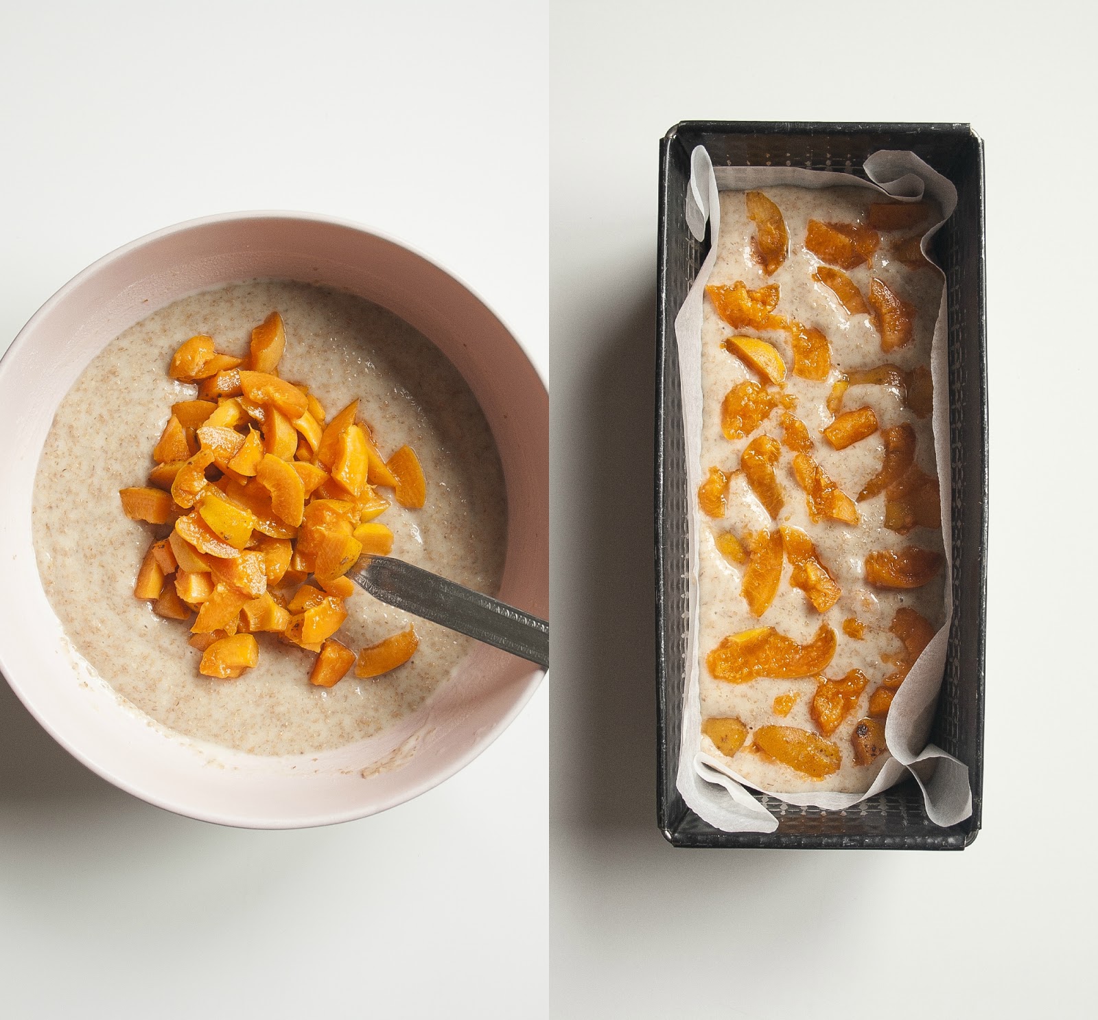 Aggiungete le albicocche ridotte a pezzetti al composto, lasciandone una manciata da parte.