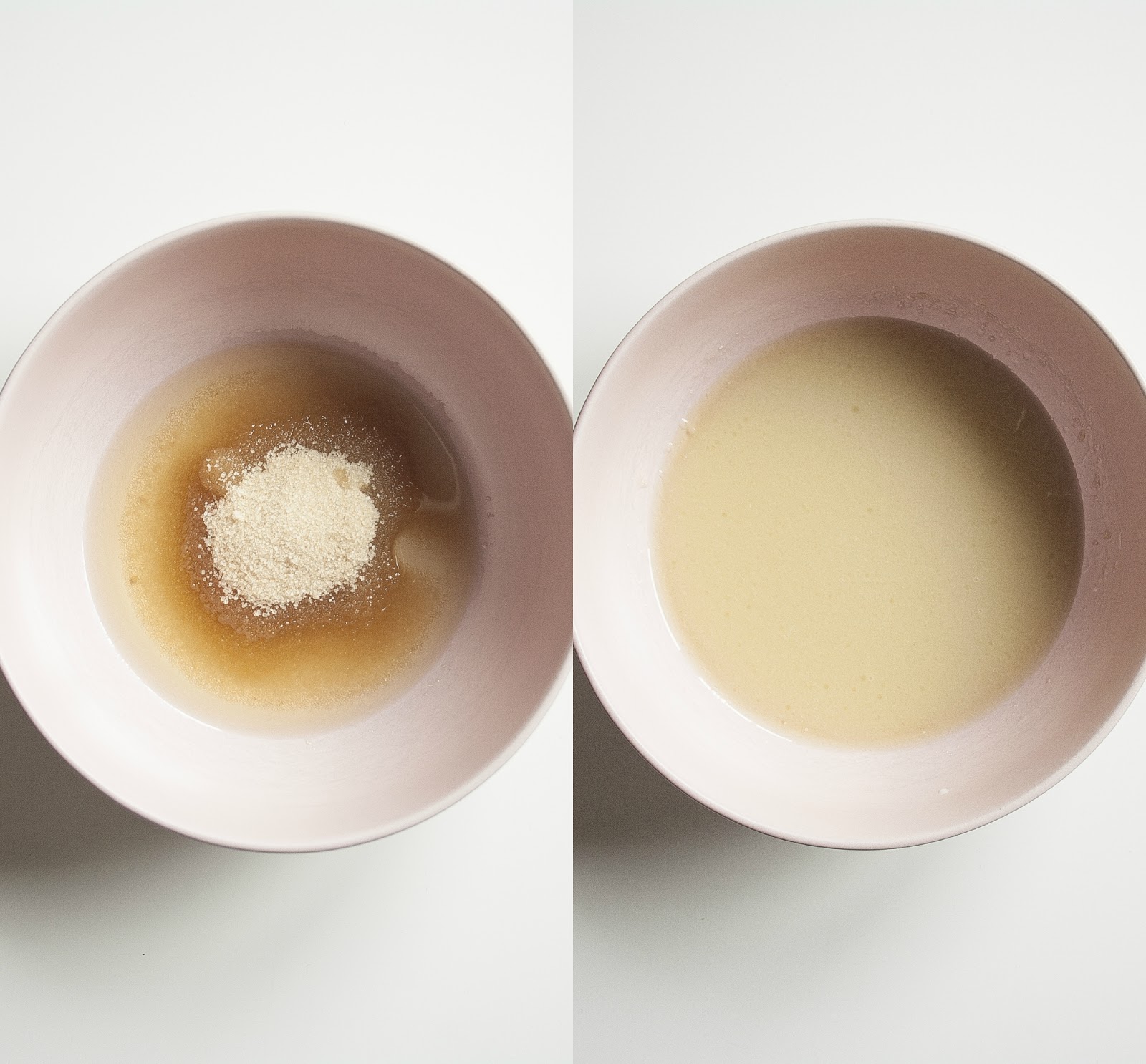 In una terrina mettete l’olio di semi e lo zucchero di canna e lavorateli con le fruste elettriche fino ad ottenere un composto omogeneo. Poi aggiungete anche il latte e ripetete lo stesso procedimento.