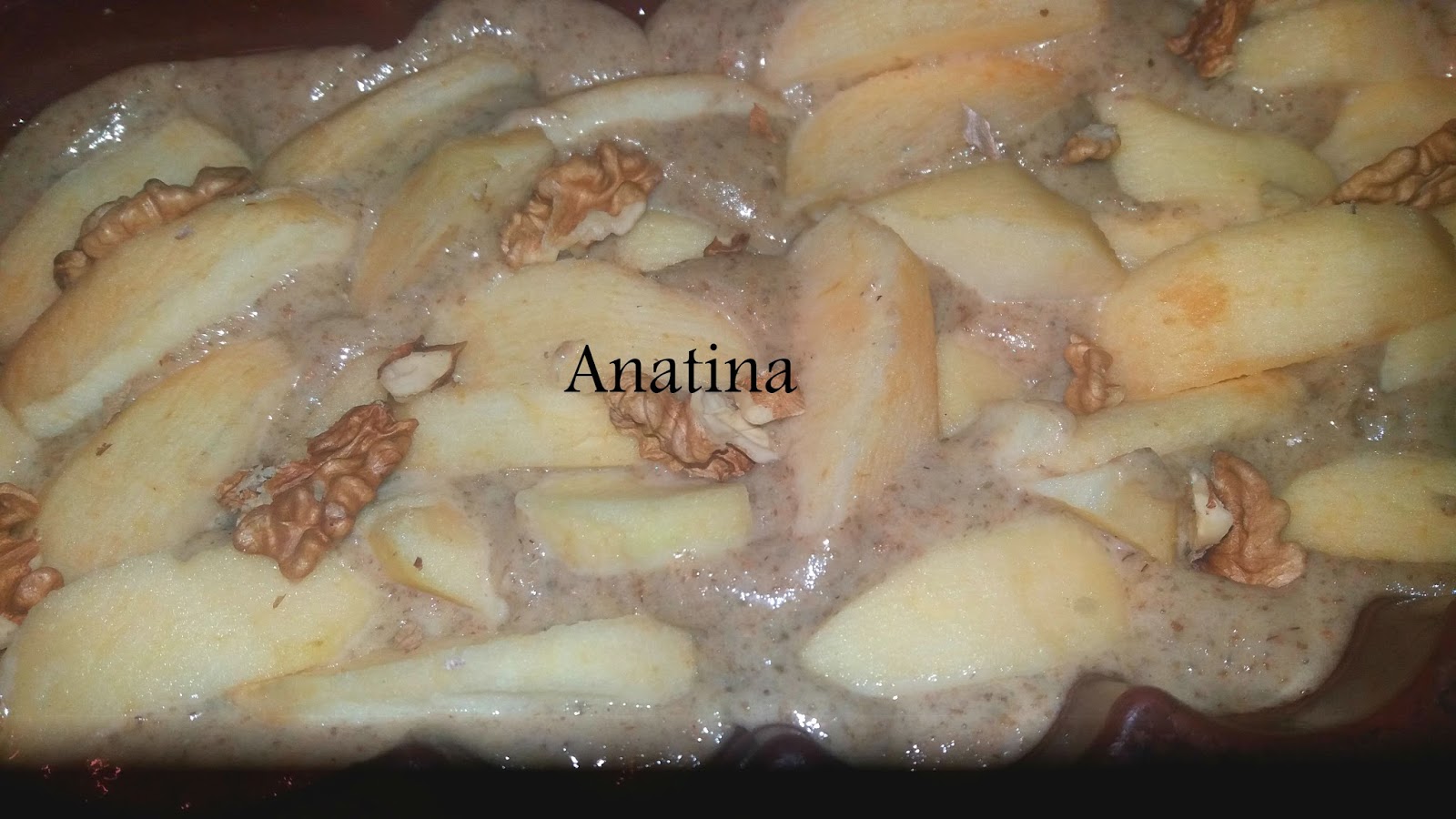 Versare in un apposito stampo e coprire con le fette di mele ed i gherigli di noci sminuzzati.