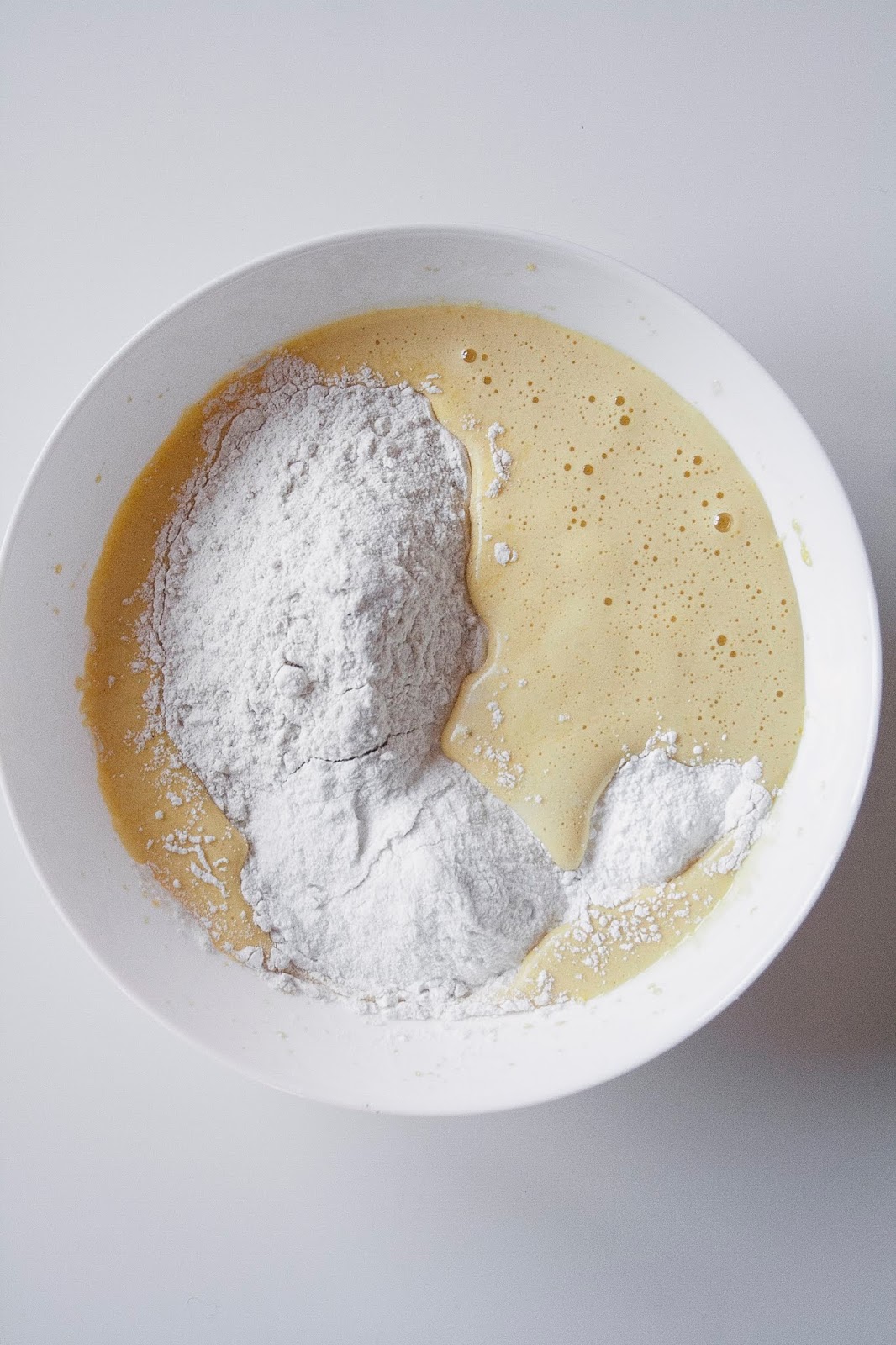 Poi combinate anche l’olio ed il latte, mescolate e poi unite 170 g di farina di tipo 2, i 50 g di farina di riso e il lievito.