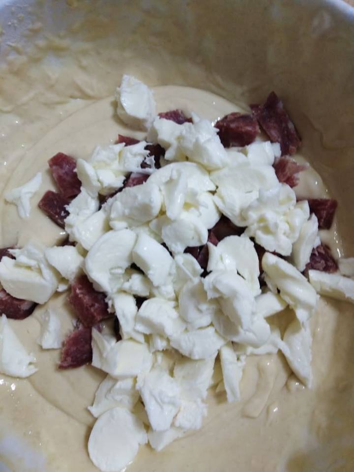 A questo punto preparate gli ingredienti d’aggiungere; tagliateli a dadini e versateli nell’impasto.
