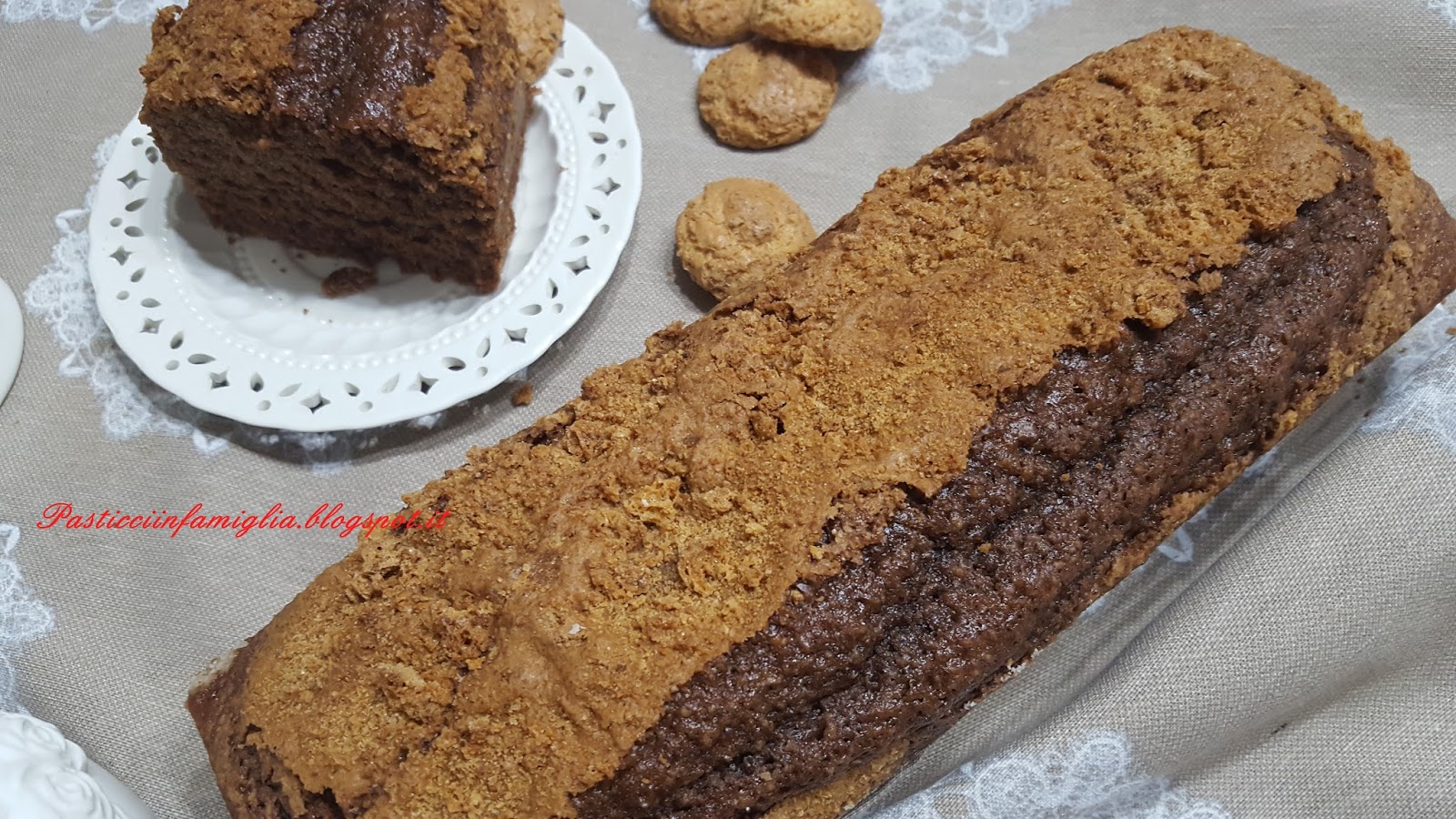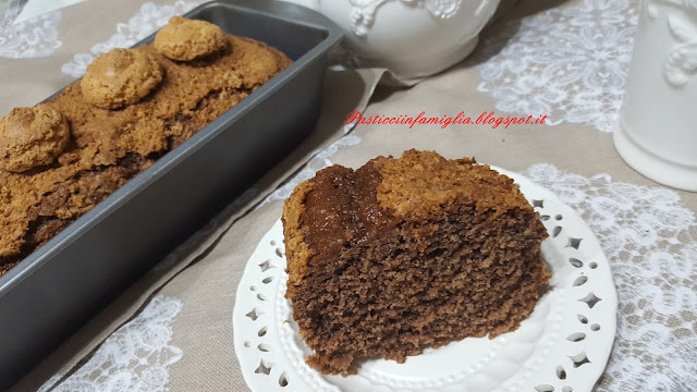 Versate il composto nello stampo , sbriciolate con le mani grossolanamente gli amaretti e versateli sul composto. Infornate a 180 in forno statico per 25 minuti circa. Fate prova stecchino e sfornate se il risulterà asciutto. Servite spolverizzando con zucchero a velo la superficie.