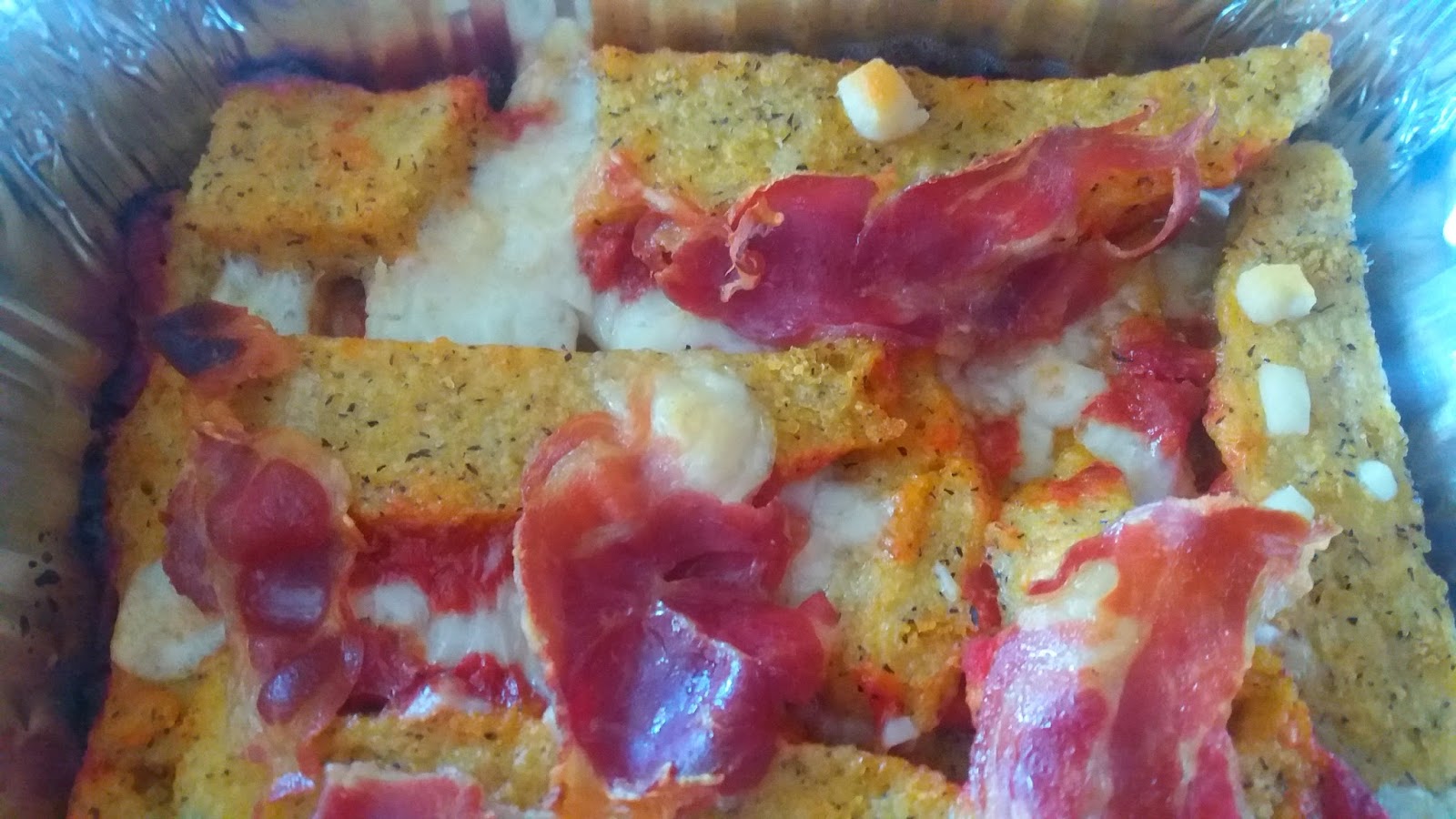 ungete una teglietta con un poco di burro e iniziate ad alternare strati di polenta ,prosciutto crudo,