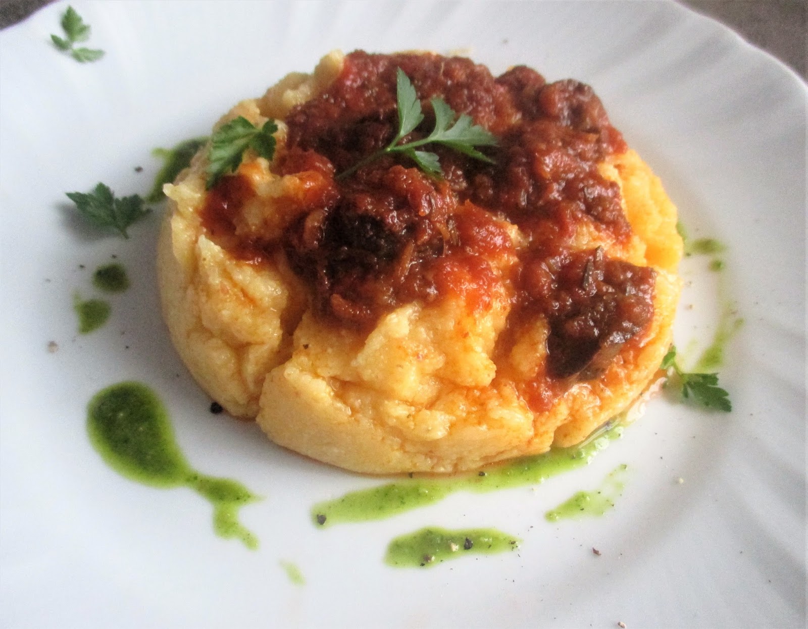 Servite caldo con le lumache, il sugo di pomodoro e il bagnet verd.