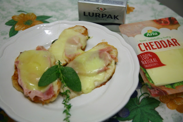 In frigo ho trovato pollo, prosciutto e Cheddar e ho deciso di sperimentare. Secondo me i gusti si sposano benissimo e per dare più profumo al piatto ho utilizzato del timo fresco e della salvia.