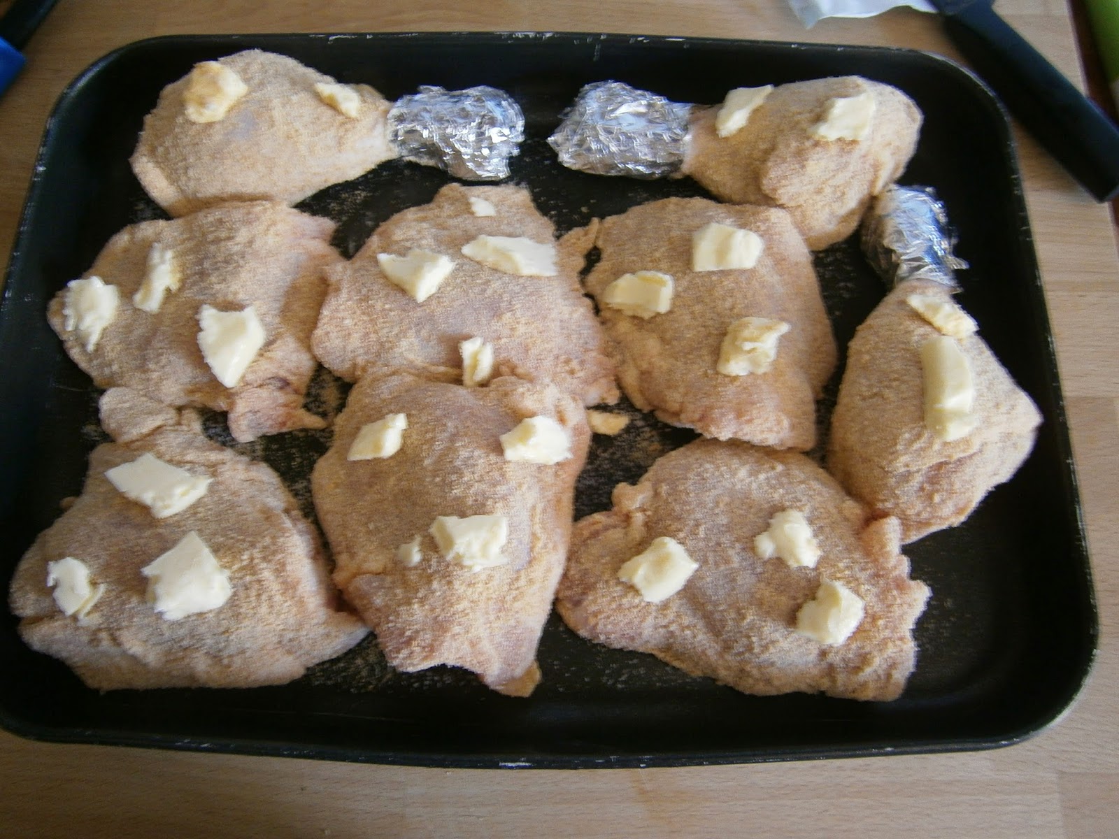 Togliere le cosce e con della stagnola coprire l’osso. Scolare bene la carne e