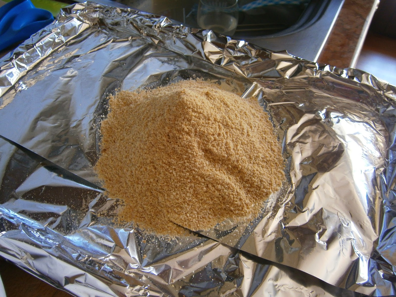 In un vassoio versare il pane grattugiato. Scaldare il forno a 180°.