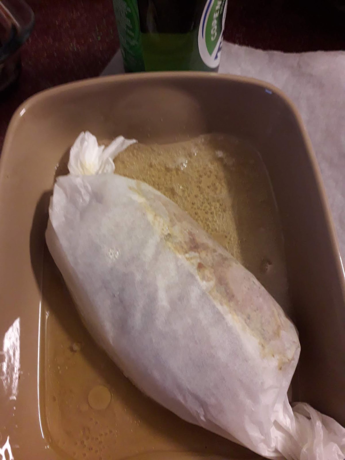 lo avvolgiamo poi, spolverato di paprica ,in carta forno,lo poggiamo in una teglietta