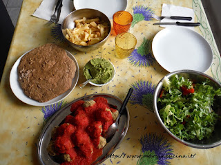 Accompagnare a piacere, io ho fatto uno strappo alla regola ed ho preparato patate fritte e la crema di avocado, per la cui ricetta clicca qui: Crema di avocado alla ligure. Naturalmente il tutto preceduto da una bella insalatona di stagione ;-)