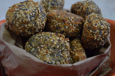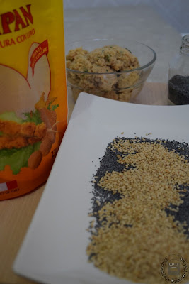 Formate le polpette e passatele nella panatura formata da Impan Ariosto (o classico pane grattuggiato) e semi di papavero e sesamo.