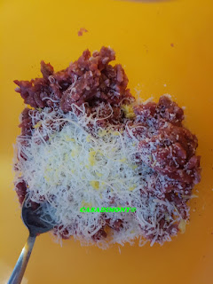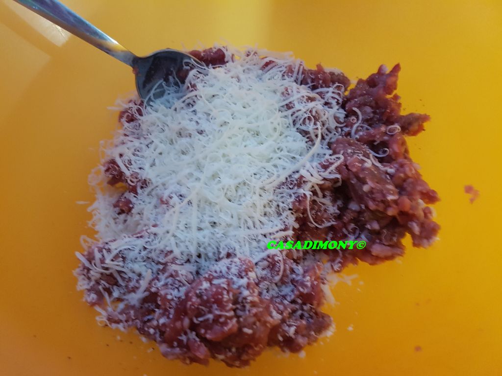 In una ciotola ho messo la carne trita, il formaggio grattugiato