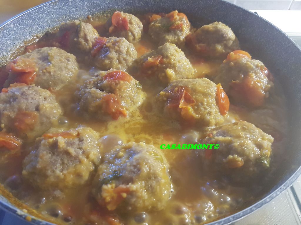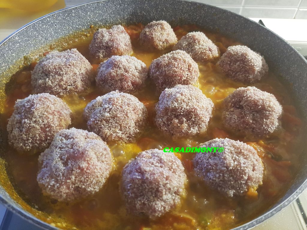 Ho aggiunto un pò di acqua per la cottura, il basilico e ho salato a piacere, li ho fatti cuocere per circa 10 minuti e poi ho aggiunto le polpette