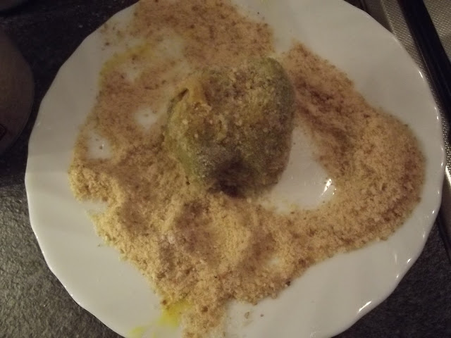 Avevo nel frigo sole solette delle cime di rapa lessate che piangevano e non sapevo come consumarle, cosi’ mi e’ venuto in mente di provare a fare una frittata, ma non mi ispirava particolarmente, cosi’ ho deciso di preparare delle polpette: ho messo le cime nel robot, ho aggiunto un uovo, del parmigiano grattuggiato, del pangrattato e ho amalgamato tutto insieme, poi le ho formate nella mano , le ho passate nella farina, nell’uovo sbattuto, nel pangrattato e poi le ho disposte in teglia su carta da forno, le ho infornate a 200 gradi circa per una quindicina di minuti e le ho subito calde.