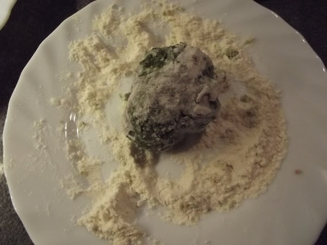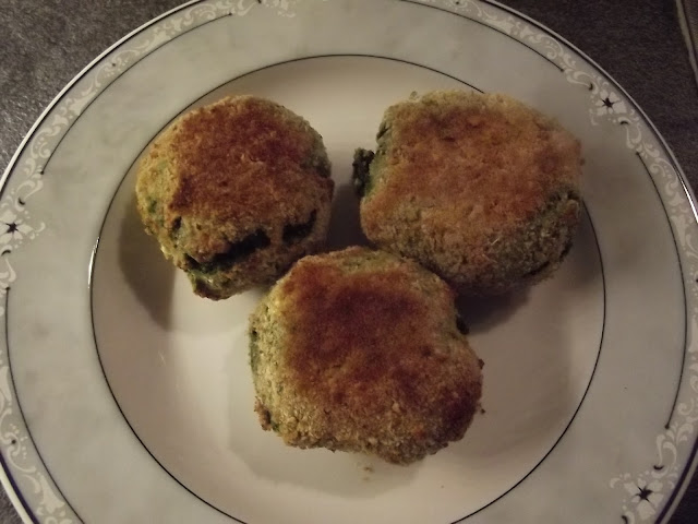 Avevo nel frigo sole solette delle cime di rapa lessate che piangevano e non sapevo come consumarle, cosi’ mi e’ venuto in mente di provare a fare una frittata, ma non mi ispirava particolarmente, cosi’ ho deciso di preparare delle polpette: ho messo le cime nel robot, ho aggiunto un uovo, del parmigiano grattuggiato, del pangrattato e ho amalgamato tutto insieme, poi le ho formate nella mano , le ho passate nella farina, nell’uovo sbattuto, nel pangrattato e poi le ho disposte in teglia su carta da forno, le ho infornate a 200 gradi circa per una quindicina di minuti e le ho subito calde.