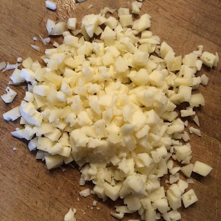 Mentre il miglio cuoceva, ho tagliato a dadini le zucchine (che ho stufato) ed il formaggio