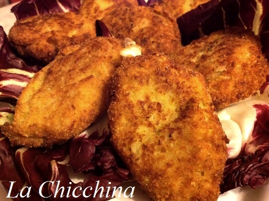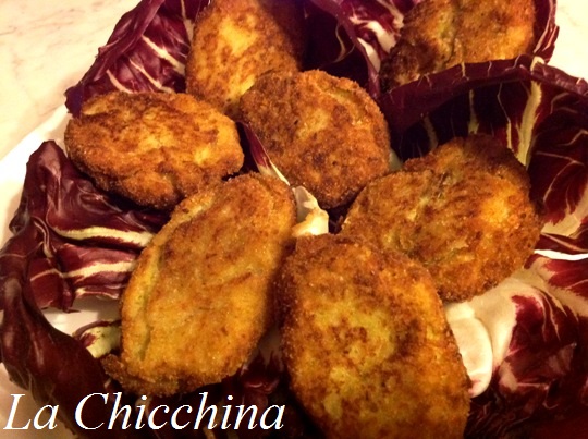 -pangrattato q.b. (io circa 5 cucchiai per l’impasto + quello necessario per la panatura)