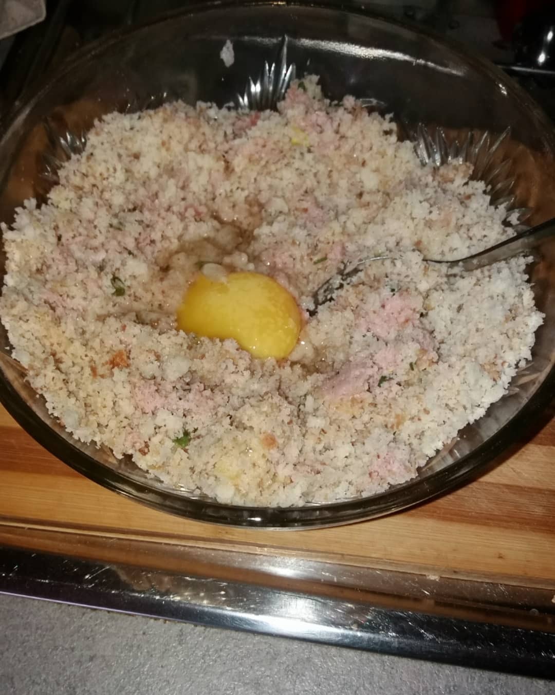 INGREDIENTI : Pane raffermo di qualche giorno - 1 uovo - 100 g di mortadella - 1/2 spicchio di aglio – prezzemolo -2 cucchiai di parmigiano grattugiato - noce moscata - sale q.b. – pepe q. b.- latte per ammorbidire il pane. PER LA COTTURA: Brodo vegetale (dado), 1 spicchio d’aglio, olio extravergine d’oliva, 1 rametto di rosmarino.